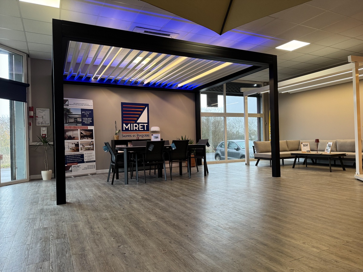 A Marly, le nouveau showroom MIRET Stores et Pergolas : un lieu d’exposition pour découvrir les solutions de protection solaire en immersion.